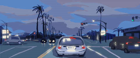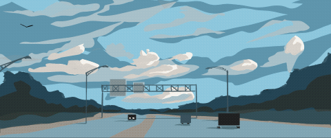 Retro-style GIFs made by me using Procreate… birds and US road-trip fantasies.